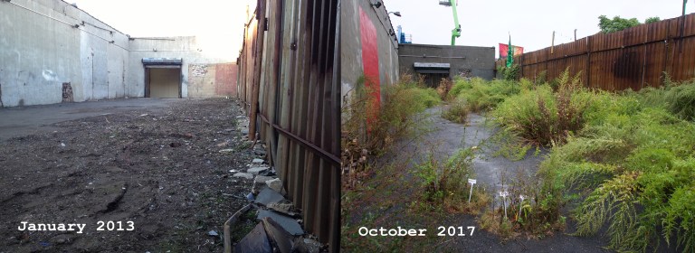 1067 PacificPeople is a five-year social-ecological movement-based art project by artist and choreographer Andrea Haenggi in collaboration with writer Robert Neuwirth. In 2013 Haenggi and writer Robert Neuwirth signed a 5-year lease for 1067 Pacific Street, a former auto-repair garage with a 1900 Sq Ft vacant lot in Crown Heights, Brooklyn. The socially and ecologically engaged research and performance artwork, with its many public encounters, turned from a rented garage and lot into an urban weeds ecosystem and as well into the co-founding of the artist collective Environmental Performance Agency (EPA) in March 2017.